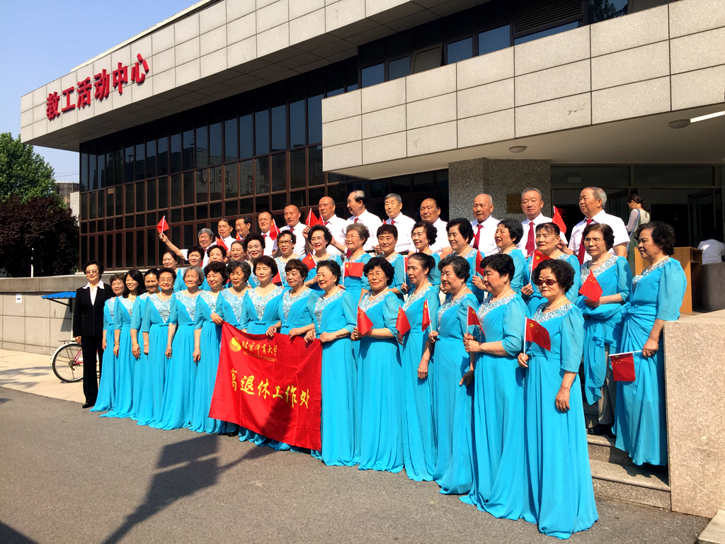 代表我校参加此次活动的同心合唱团40余位老同志平均年龄在70岁以上,他们通过精心、细致的准备,在此次汇演中也完美的呈现出我校老体育人健康、快乐的精神面貌。