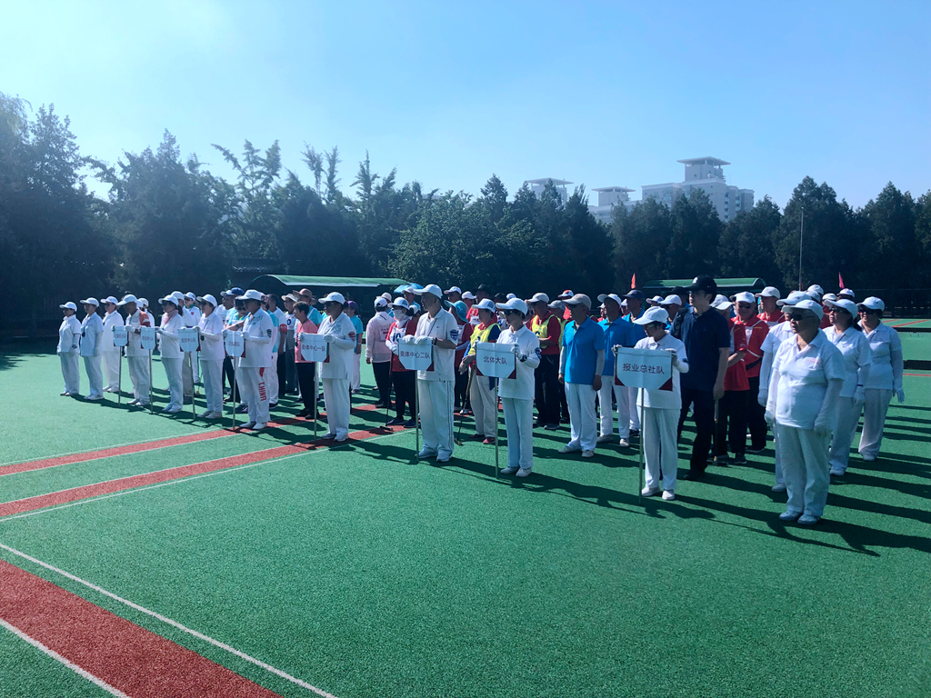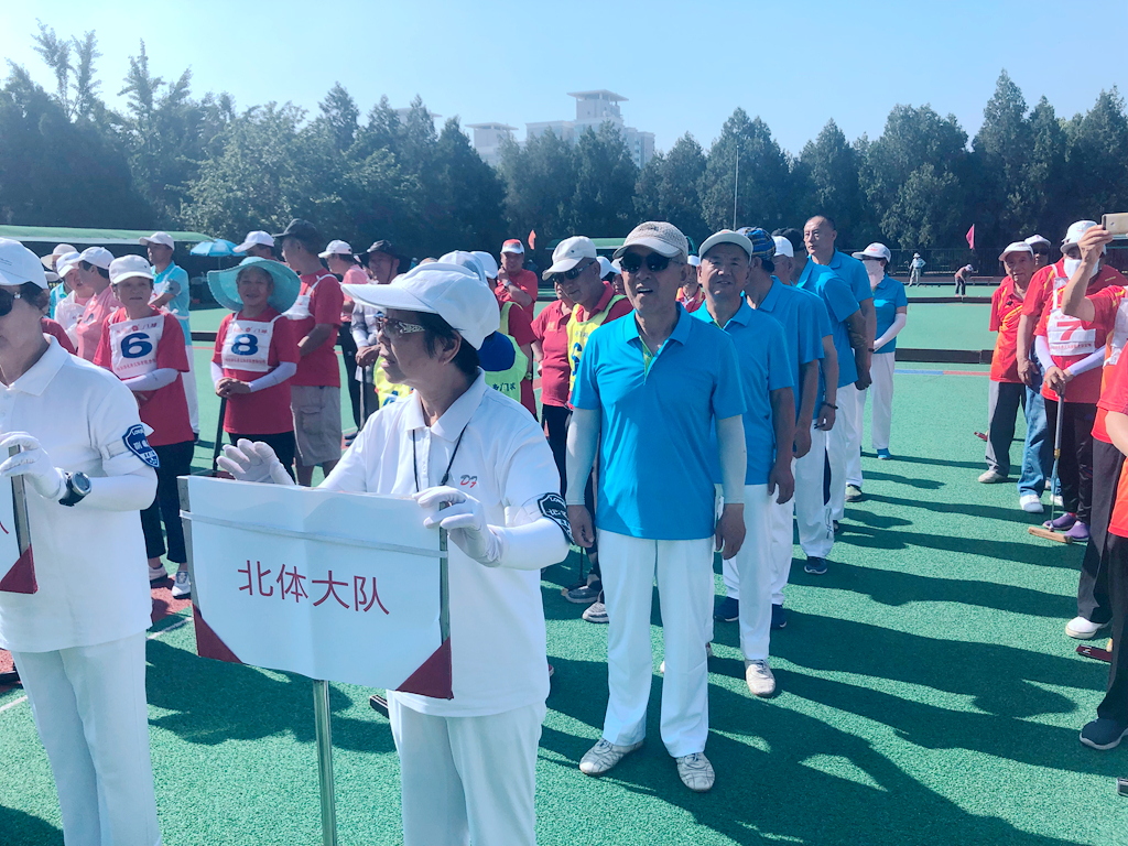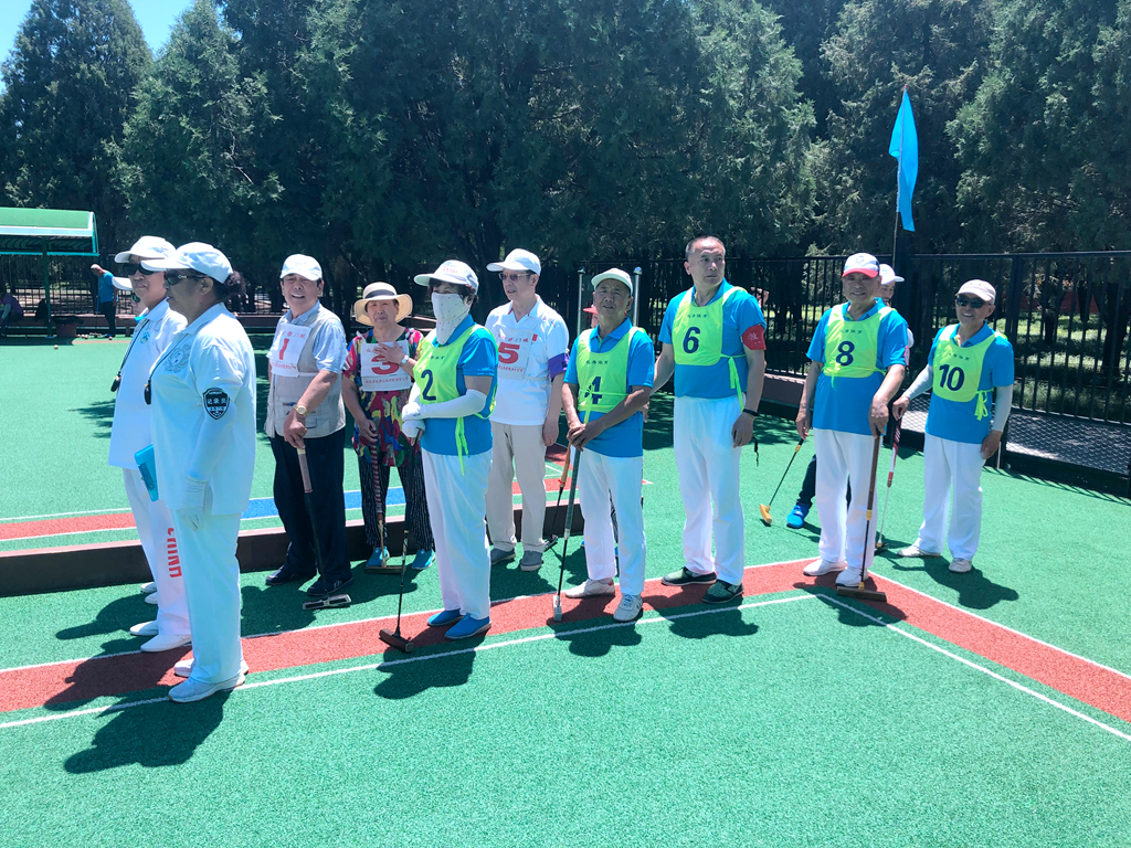6月14日,北体大老年门球队来到地坛公园门球场参加由国家体育总局组织的“2019年国家体育总局系统老年门球赛”。本次比赛共有来自北体大、总局机关、射运中心、自剑中心、训练局、奥体中心、报业总社7家单位的8支队伍参赛,参赛人数50余人。