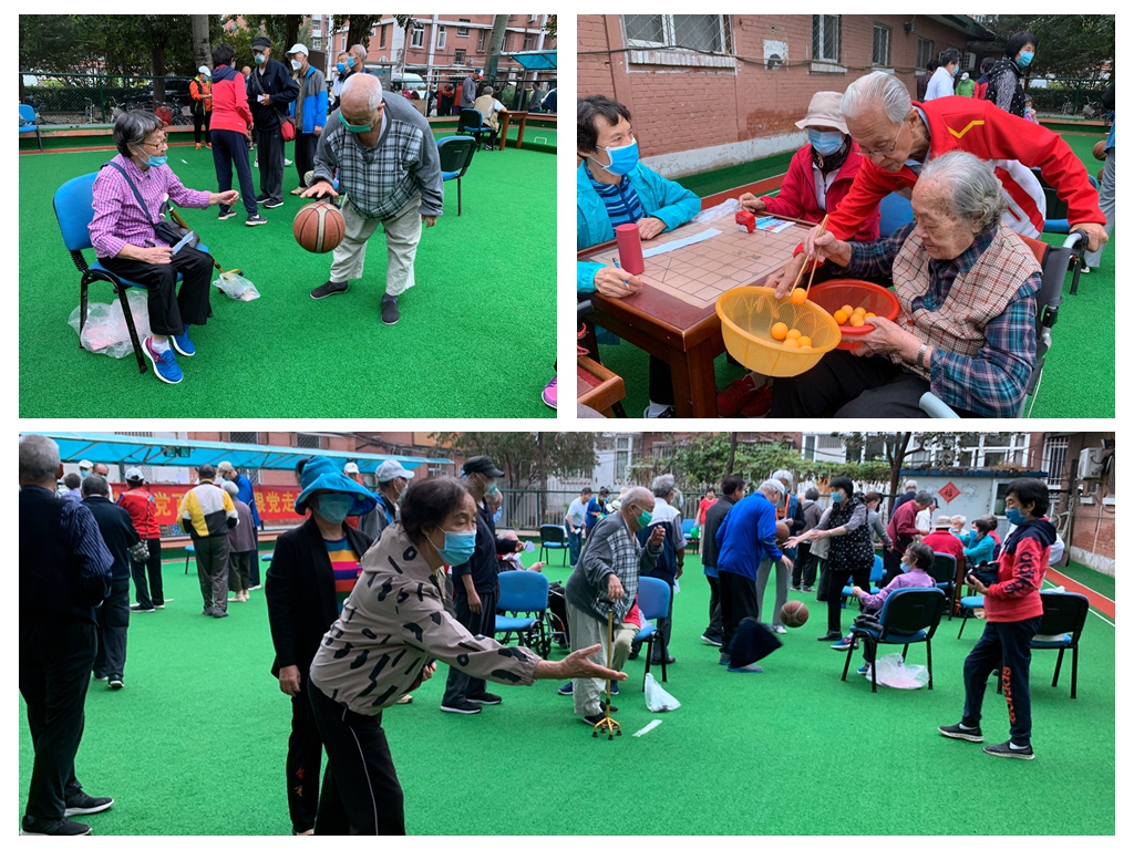 伴随着天清气朗、风和日丽的好天气,离退休老同志们早早来到活动场地。根据老年人的年龄和身体状况,我处共设置了 “你投我接”、“沙包打地靶”、“击球过门”、“原地运球”、“夹兵乓球”、“双人配合投篮”六个趣味项目,有的需要队友相互配合、有的需要耐心细致,强度不高、乐趣不少。活动现场老同志们兴致高昂,名显身手,气氛热闹非凡。大家放松身心,沐浴在和煦的日光中,呼吸着新鲜的空气,享受活动带来的快乐。