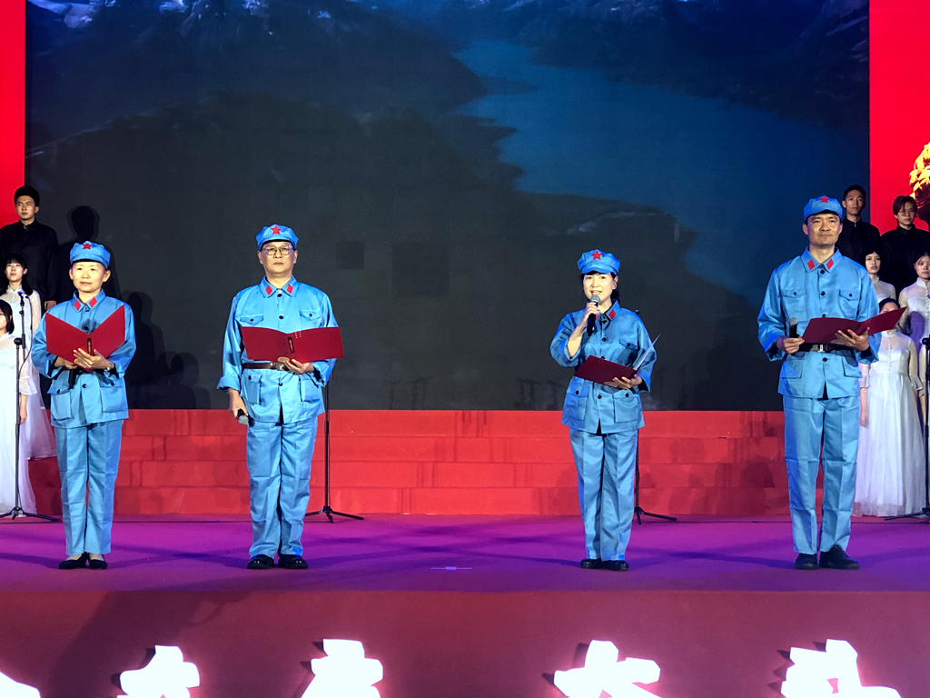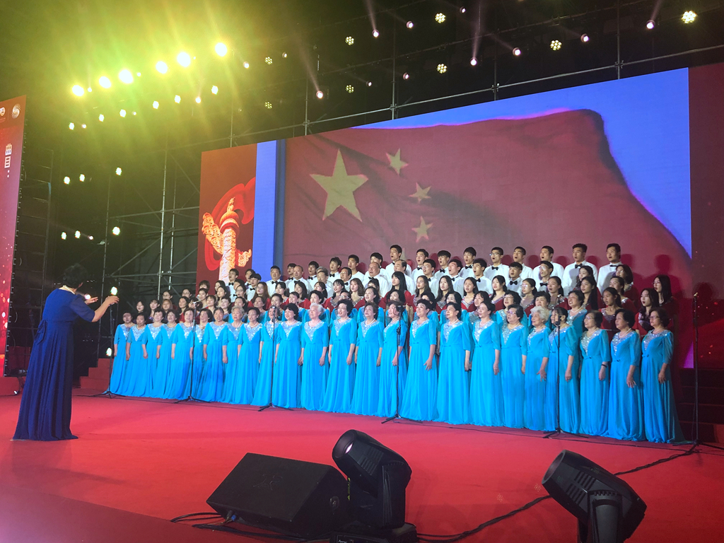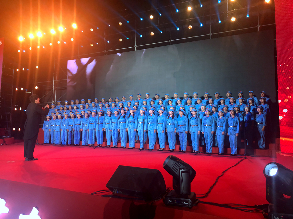 由我校老同志代表与国际体育组织学院共同带来的音诗画表演《苦难辉煌》、与机关干部、武术表演队共同带来的《过雪山草地》、《在太行山上》均收获了观众们的热烈反响,演出最后由我处同心合唱团参与引领的全体参演人员、观众大合唱《歌唱祖国》将本次活动推向最高潮。